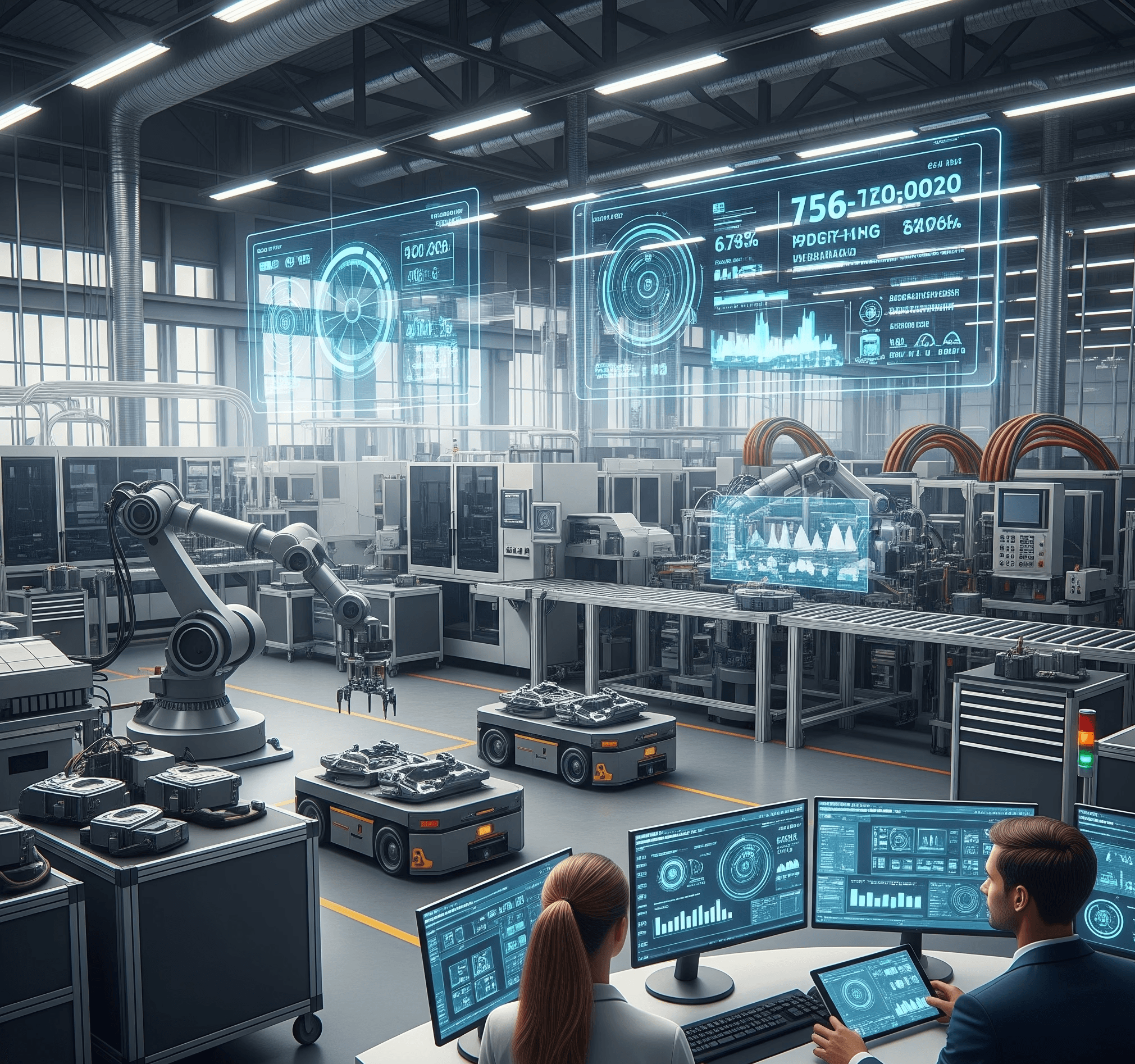 Robotic arms, automated material handling, Vision-based inspection systems,